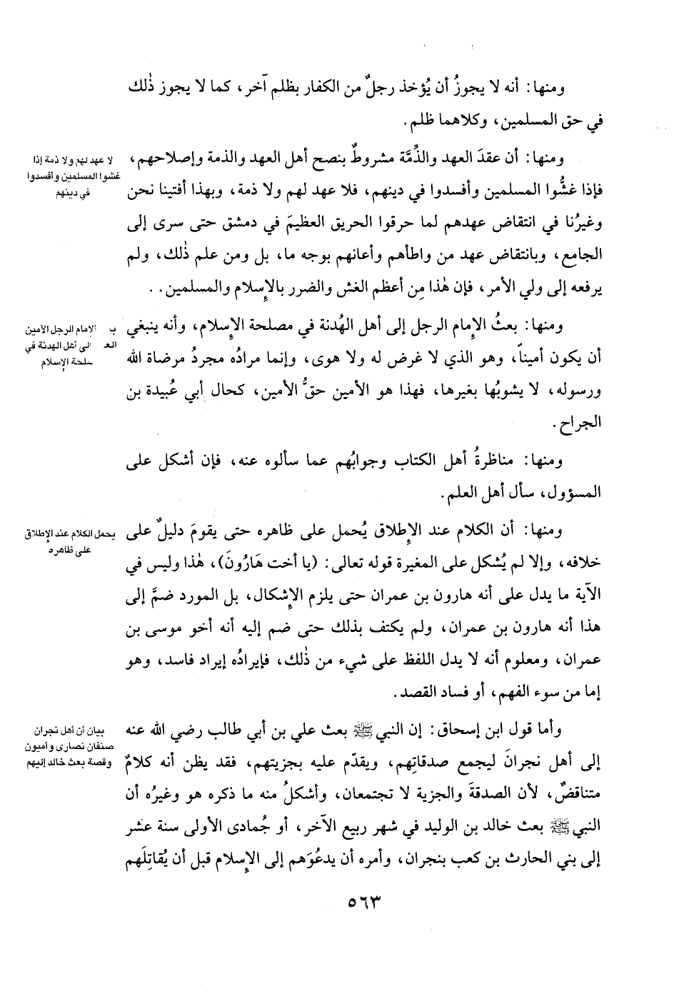 وَمِنْهَا: مُنَاظَرَةُ أَهْلِ الْكِتَابِ وَجَوَابُهُمْ عَمَّا سَأَلُوهُ عَنْهُ، فَإِنْ أُشْكِلَ عَلَى الْمَسْئُولِ سَأَلَ أَهْلَ الْعِلْمِ.