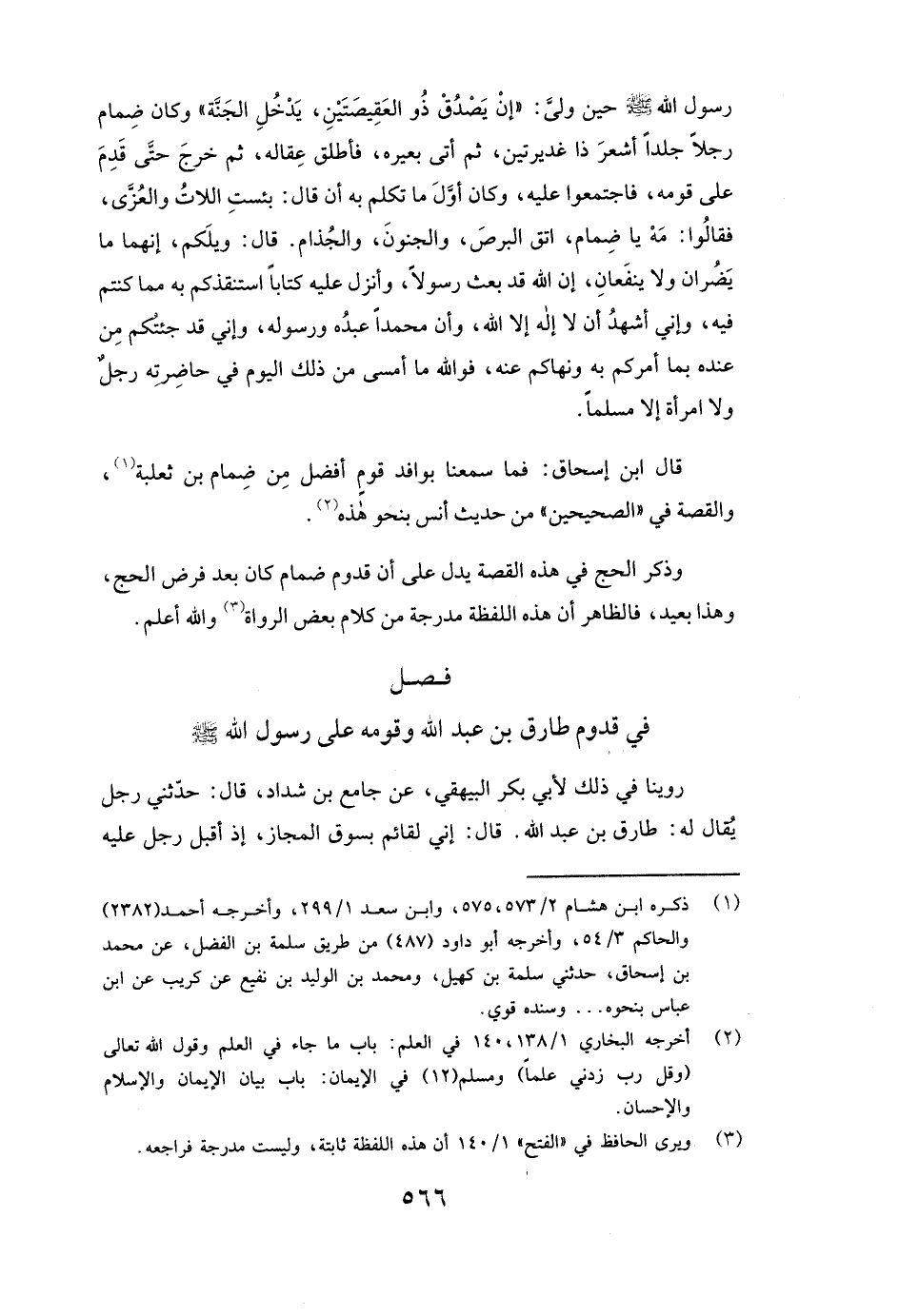 قَالَ ابْنُ إِسْحَاقَ: فَمَا سَمِعْنَا بِوَافِدِ قَوْمٍ أَفْضَلَ مِنْ ضمام بن ثعلبة وَالْقِصَّةُ فِي " الصَّحِيحَيْنِ " مِنْ حَدِيثِ أنس بِنَحْوِ هَذِهِ.
