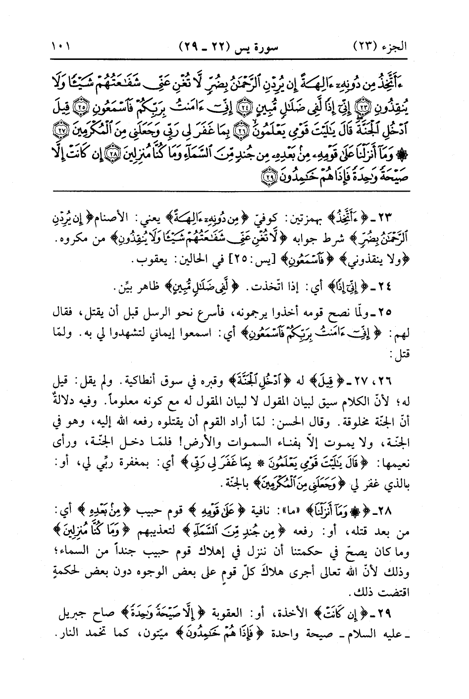 قِيلَ ادْخُلِ الْجَنَّةَ قَالَ يَا لَيْتَ قَوْمِي يَعْلَمُونَ (26)