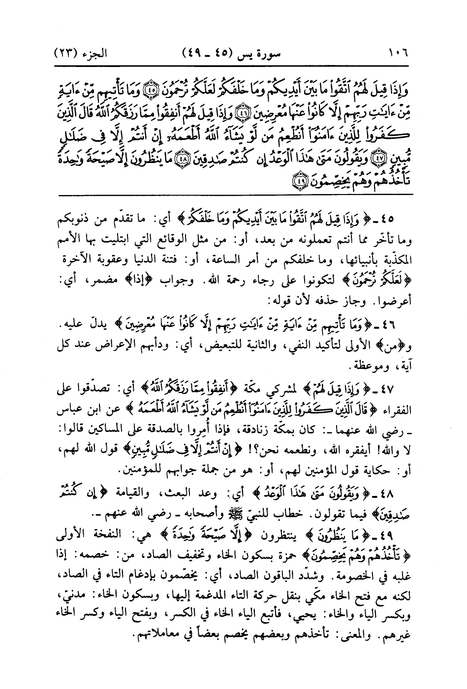 وَإِذَا قِيلَ لَهُمُ اتَّقُوا مَا بَيْنَ أَيْدِيكُمْ وَمَا خَلْفَكُمْ لَعَلَّكُمْ تُرْحَمُونَ (45)