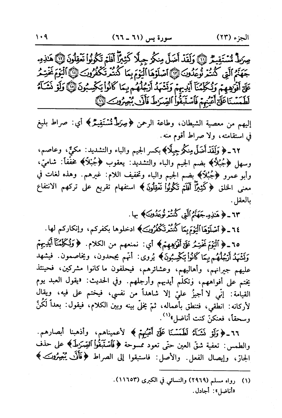 الْيَوْمَ نَخْتِمُ عَلَى أَفْوَاهِهِمْ وَتُكَلِّمُنَا أَيْدِيهِمْ وَتَشْهَدُ أَرْجُلُهُمْ بِمَا كَانُوا يَكْسِبُونَ (65)