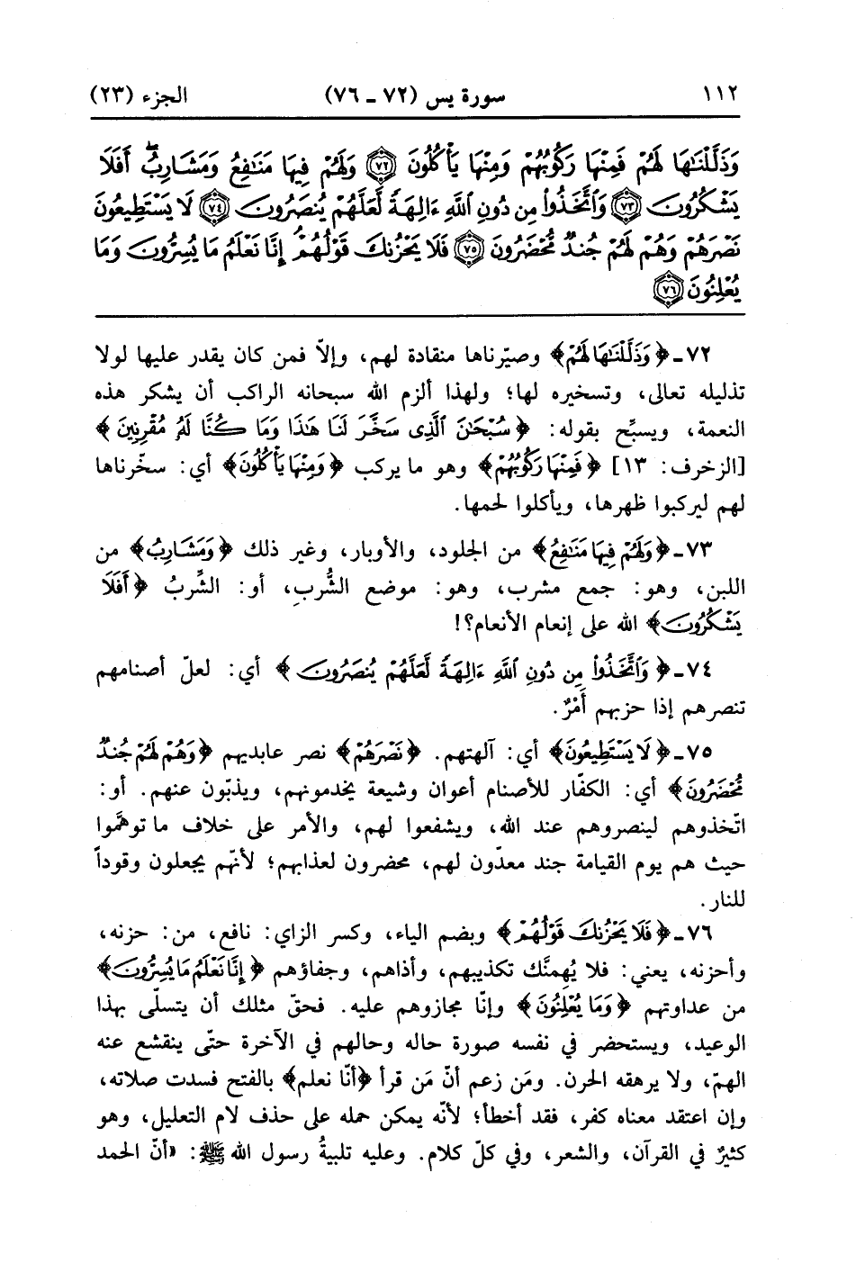 وَذَلَّلْنَاهَا لَهُمْ فَمِنْهَا رَكُوبُهُمْ وَمِنْهَا يَأْكُلُونَ (72)