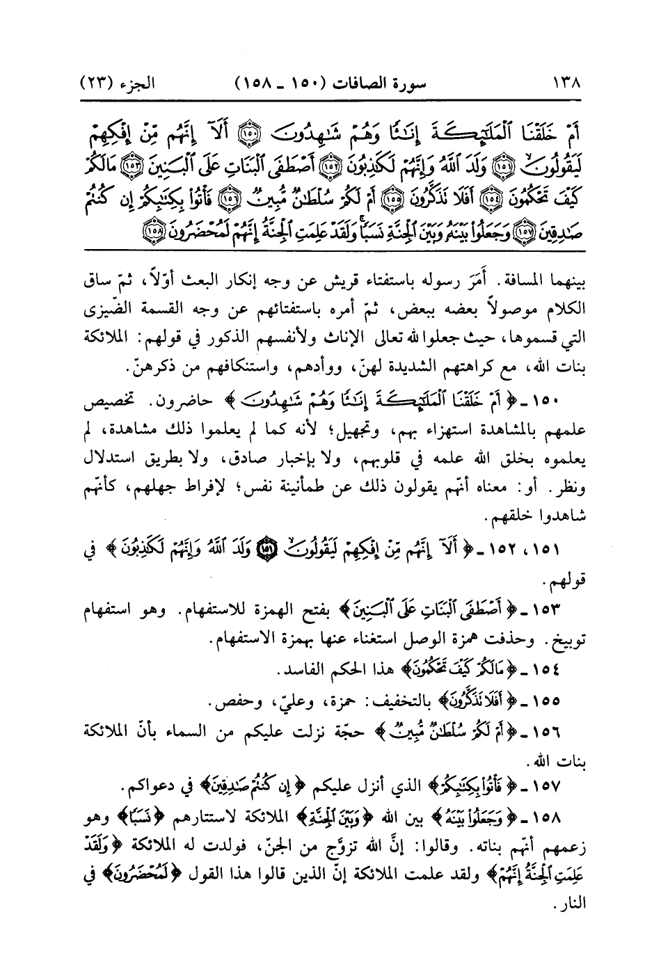 أَمْ خَلَقْنَا الْمَلَائِكَةَ إِنَاثًا وَهُمْ شَاهِدُونَ (150)
