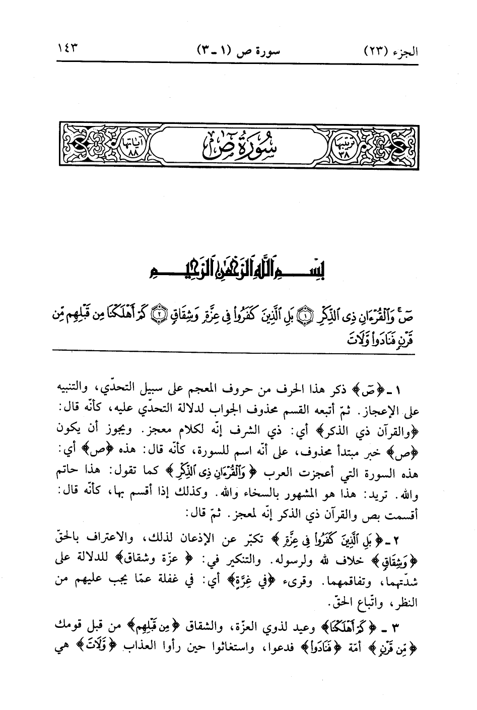 بسم الله الرحمن الرحيم {ص والقرآن ذي الذكر بل الذين كفروا في عزة وشقاق {