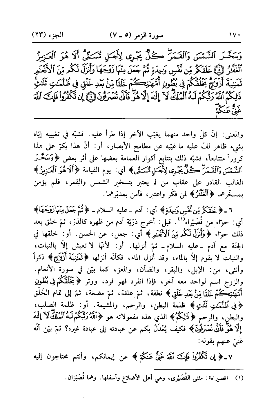 إِنْ تَكْفُرُوا فَإِنَّ اللَّهَ غَنِيٌّ عَنْكُمْ وَلَا يَرْضَى لِعِبَادِهِ الْكُفْرَ وَإِنْ تَشْكُرُوا يَرْضَهُ لَكُمْ وَلَا تَزِرُ وَازِرَةٌ وِزْرَ أُخْرَى ثُمَّ إِلَى رَبِّكُمْ مَرْجِعُكُمْ فَيُنَبِّئُكُمْ بِمَا كُنْتُمْ تَعْمَلُونَ إِنَّهُ عَلِيمٌ بِذَاتِ الصُّدُورِ (7)