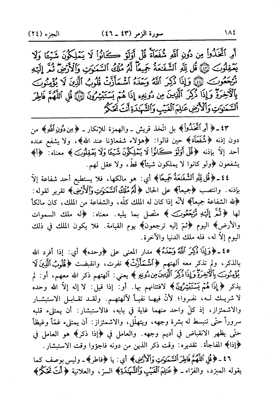 قُلْ لِلَّهِ الشَّفَاعَةُ جَمِيعًا لَهُ مُلْكُ السَّمَاوَاتِ وَالْأَرْضِ ثُمَّ إِلَيْهِ تُرْجَعُونَ (44)