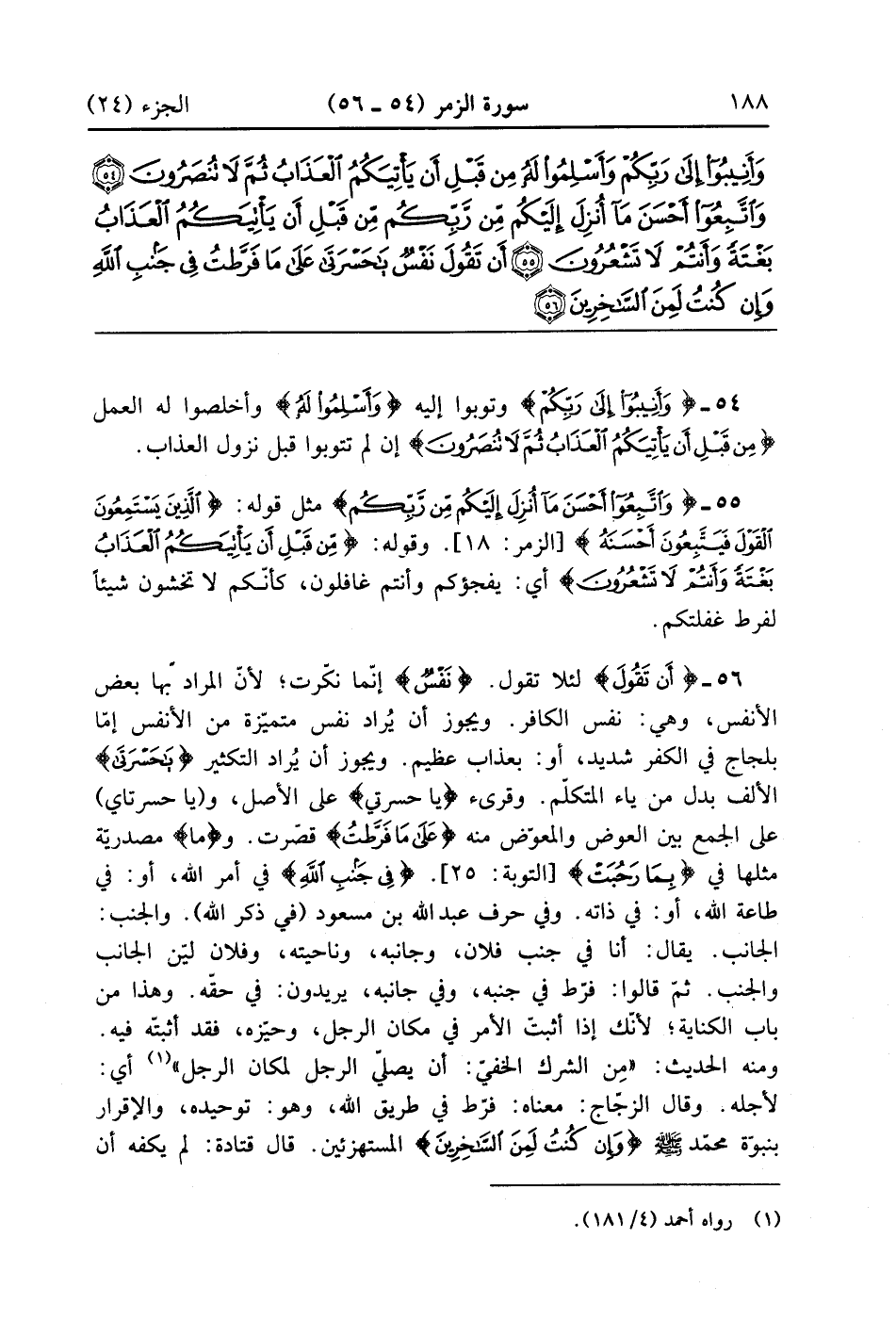 أَنْ تَقُولَ نَفْسٌ يَا حَسْرَتَا عَلَى مَا فَرَّطْتُ فِي جَنْبِ اللَّهِ وَإِنْ كُنْتُ لَمِنَ السَّاخِرِينَ (56)