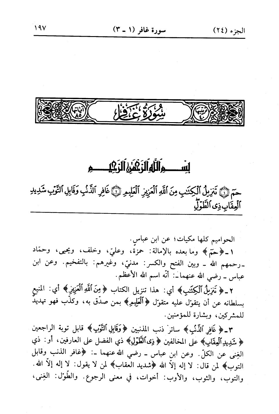 غَافِرِ الذَّنْبِ وَقَابِلِ التَّوْبِ شَدِيدِ الْعِقَابِ ذِي الطَّوْلِ لَا إِلَهَ إِلَّا هُوَ إِلَيْهِ الْمَصِيرُ (3)