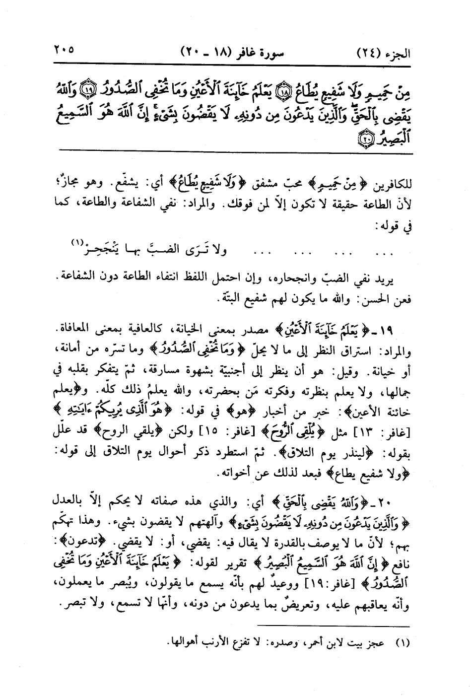 الكافرين {مِنْ حَمِيمٍ} محب مشفق {وَلاَ شَفِيعٍ يُطَاعُ} أي يشفع وهو مجاز عن الطاعة لأن الطاعة حقيقة لا تكون إلا لمن فوقك والمراد نفي الشفاعة والطاعة كما في قوله ولا ترى الضب بها ينجحر يريد به نفي الضب وانجحاره وإن احتمل اللفظ انتفاء الطاعة دون الشفاعة فعن الحسن والله ما يكون لهم شفيع البتة