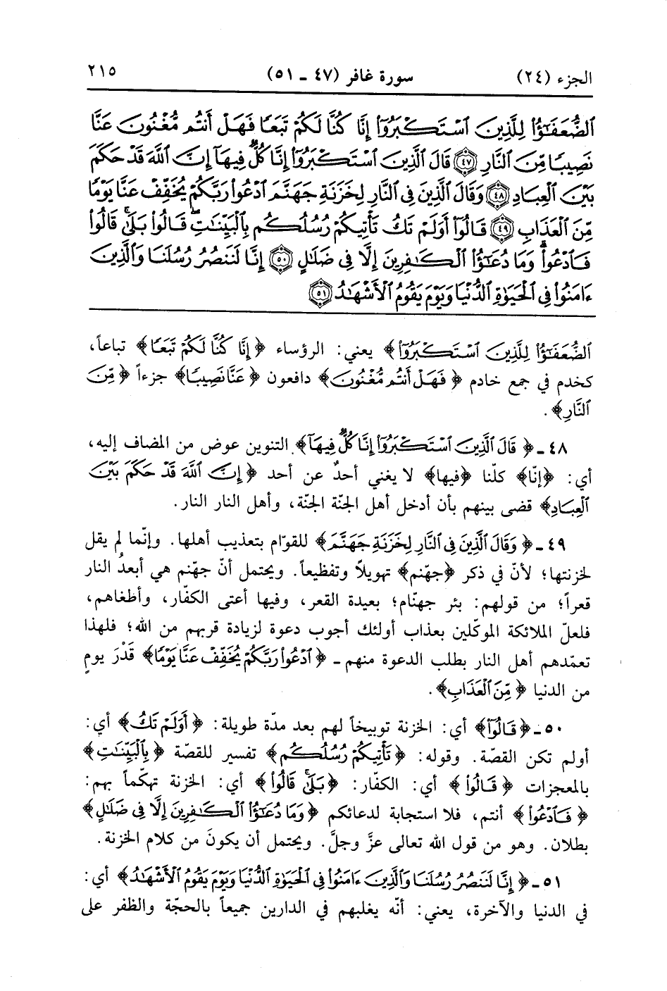 قَالَ الَّذِينَ اسْتَكْبَرُوا إِنَّا كُلٌّ فِيهَا إِنَّ اللَّهَ قَدْ حَكَمَ بَيْنَ الْعِبَادِ (48)