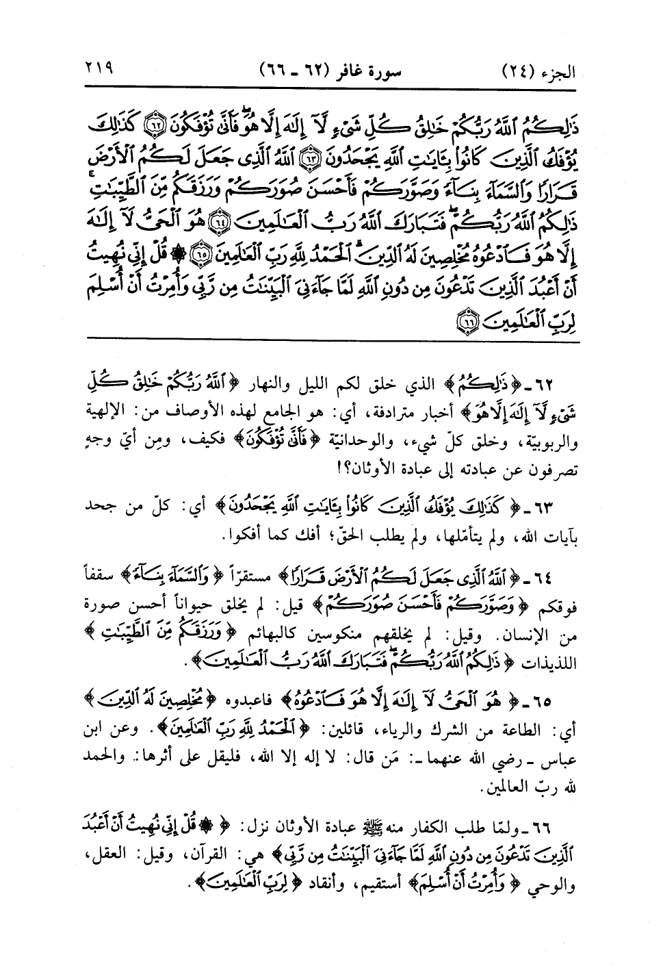 هُوَ الْحَيُّ لَا إِلَهَ إِلَّا هُوَ فَادْعُوهُ مُخْلِصِينَ لَهُ الدِّينَ الْحَمْدُ لِلَّهِ رَبِّ الْعَالَمِينَ (65)