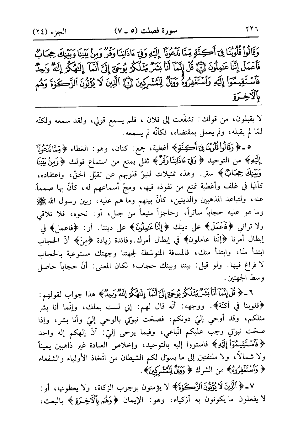 وَقَالُوا قُلُوبُنَا فِي أَكِنَّةٍ مِمَّا تَدْعُونَا إِلَيْهِ وَفِي آذَانِنَا وَقْرٌ وَمِنْ بَيْنِنَا وَبَيْنِكَ حِجَابٌ فَاعْمَلْ إِنَّنَا عَامِلُونَ (5)