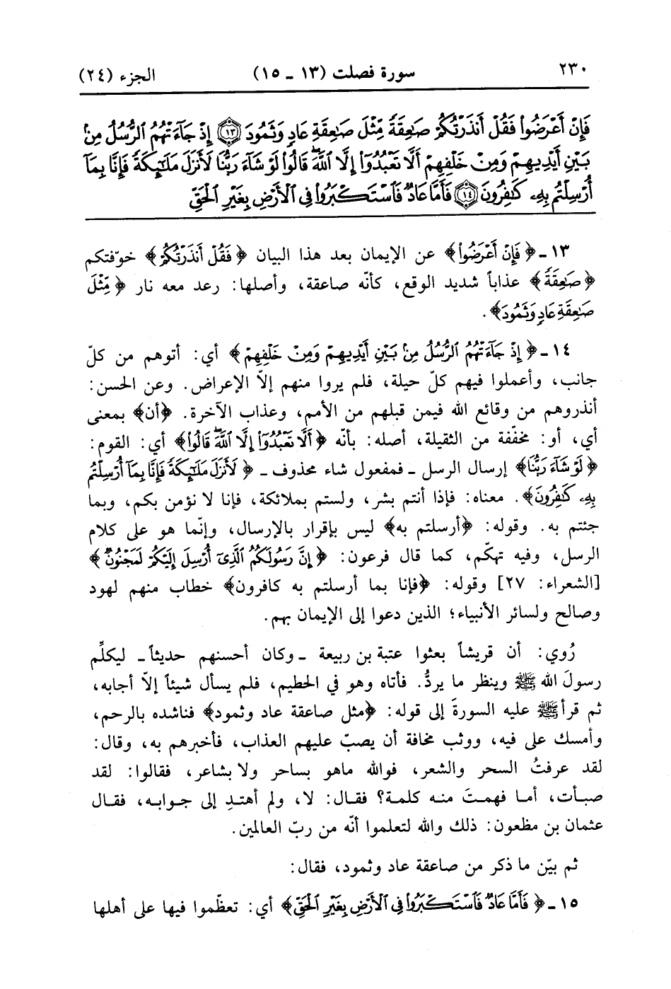 فَإِنْ أَعْرَضُوا فَقُلْ أَنْذَرْتُكُمْ صَاعِقَةً مِثْلَ صَاعِقَةِ عَادٍ وَثَمُودَ (13)