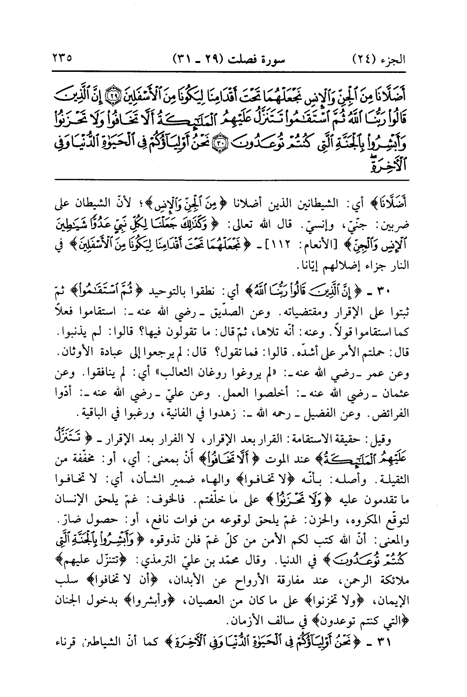 إِنَّ الَّذِينَ قَالُوا رَبُّنَا اللَّهُ ثُمَّ اسْتَقَامُوا تَتَنَزَّلُ عَلَيْهِمُ الْمَلَائِكَةُ أَلَّا تَخَافُوا وَلَا تَحْزَنُوا وَأَبْشِرُوا بِالْجَنَّةِ الَّتِي كُنْتُمْ تُوعَدُونَ (30)