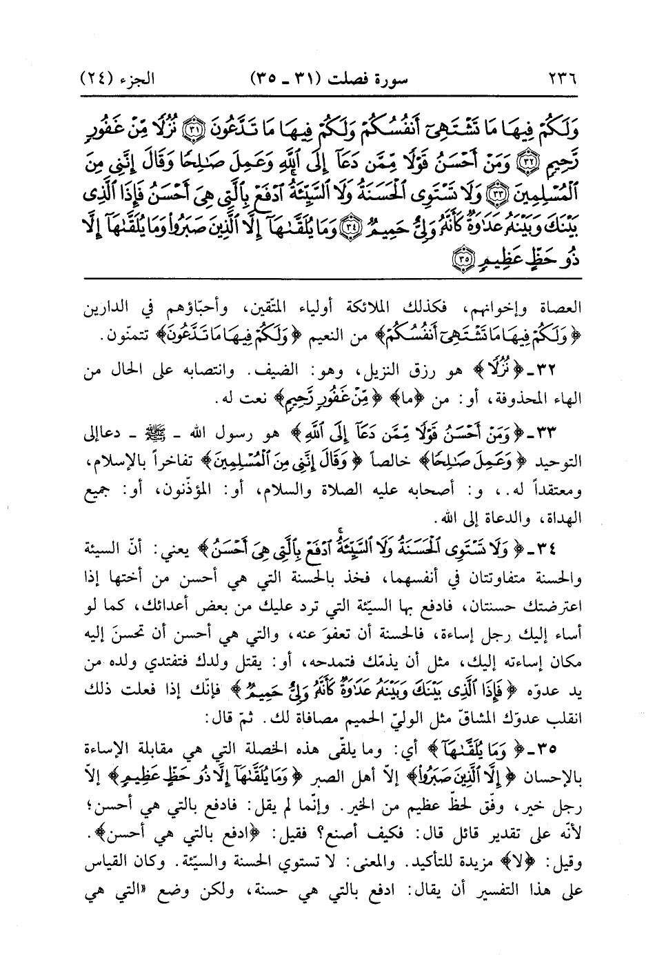 وَلَا تَسْتَوِي الْحَسَنَةُ وَلَا السَّيِّئَةُ ادْفَعْ بِالَّتِي هِيَ أَحْسَنُ فَإِذَا الَّذِي بَيْنَكَ وَبَيْنَهُ عَدَاوَةٌ كَأَنَّهُ وَلِيٌّ حَمِيمٌ (34)