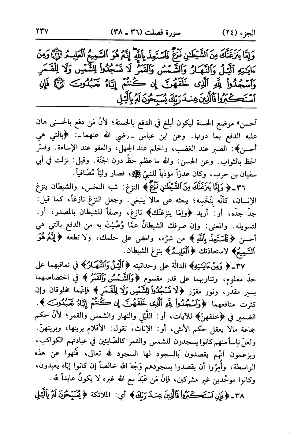 وَمِنْ آيَاتِهِ اللَّيْلُ وَالنَّهَارُ وَالشَّمْسُ وَالْقَمَرُ لَا تَسْجُدُوا لِلشَّمْسِ وَلَا لِلْقَمَرِ وَاسْجُدُوا لِلَّهِ الَّذِي خَلَقَهُنَّ إِنْ كُنْتُمْ إِيَّاهُ تَعْبُدُونَ (37)