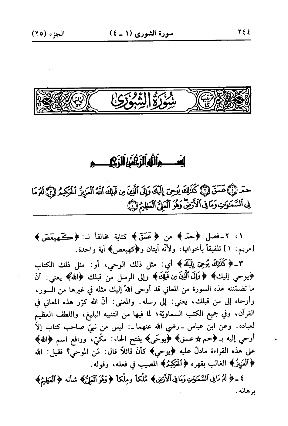 سورة شوى مكية وهى ثلاث وخمسون اية