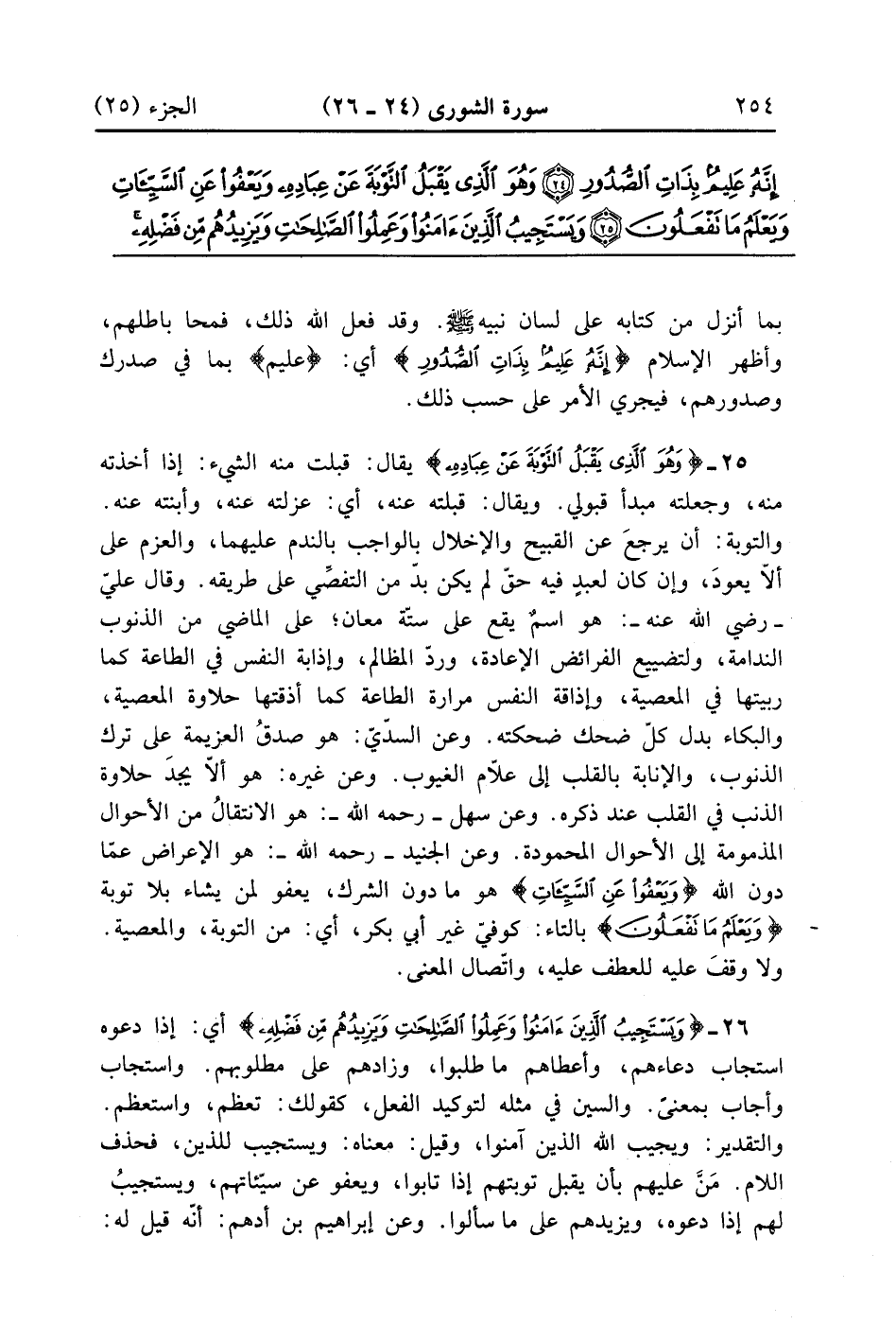 وَهُوَ الَّذِي يَقْبَلُ التَّوْبَةَ عَنْ عِبَادِهِ وَيَعْفُو عَنِ السَّيِّئَاتِ وَيَعْلَمُ مَا تَفْعَلُونَ (25)