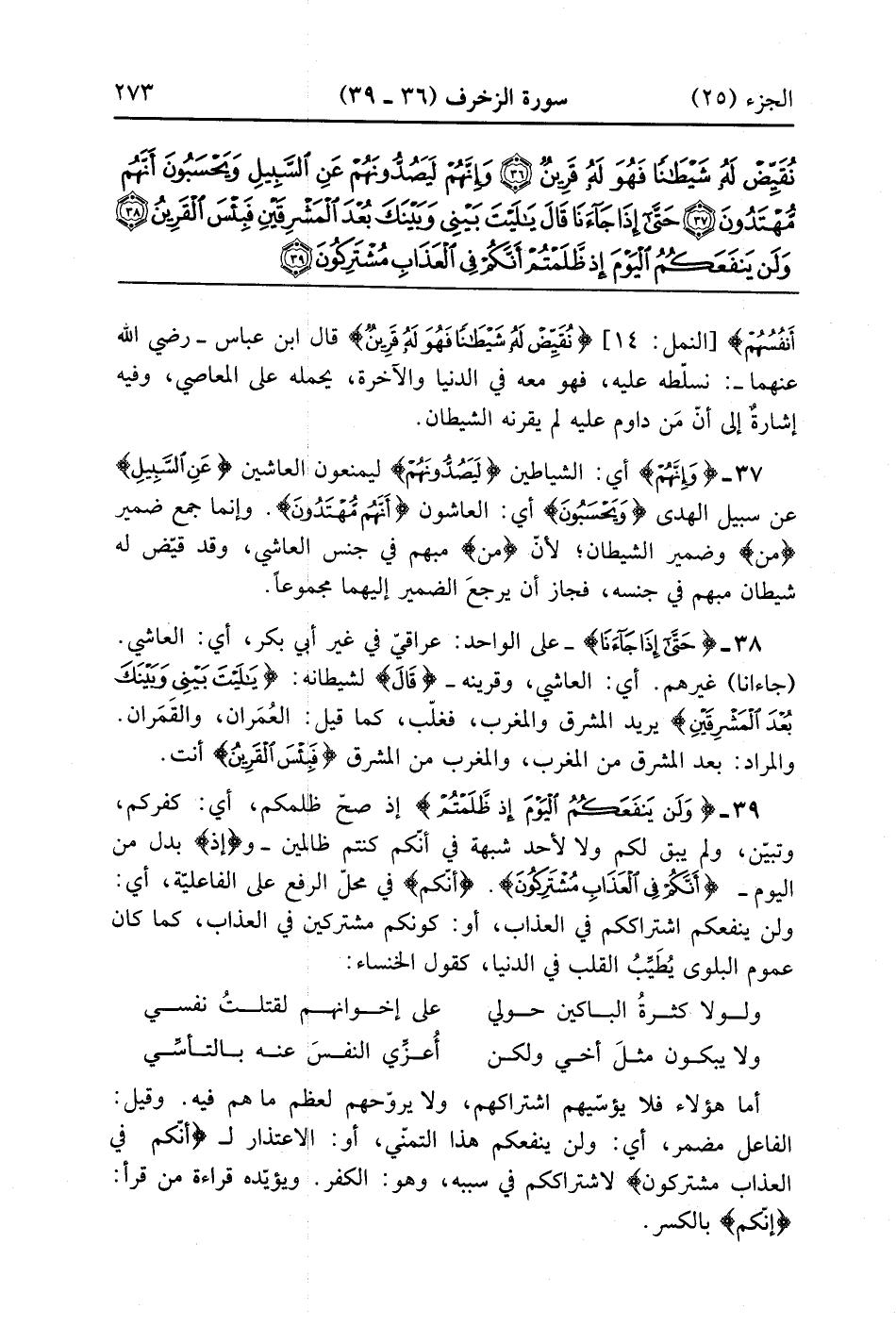 حَتَّى إِذَا جَاءَنَا قَالَ يَا لَيْتَ بَيْنِي وَبَيْنَكَ بُعْدَ الْمَشْرِقَيْنِ فَبِئْسَ الْقَرِينُ (38)