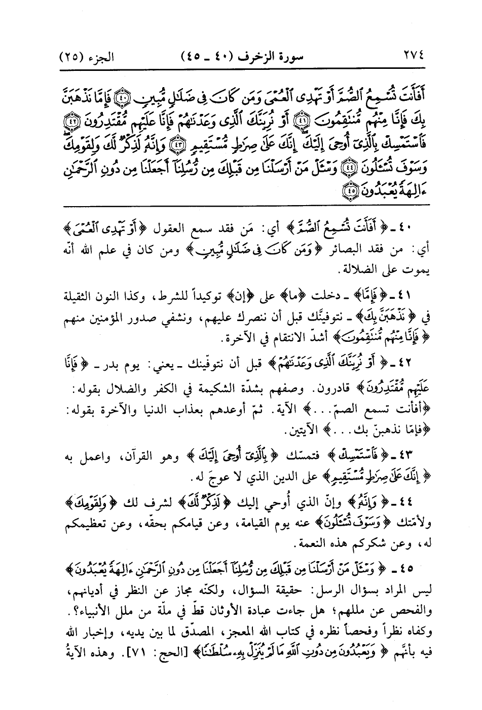 أَفَأَنْتَ تُسْمِعُ الصُّمَّ أَوْ تَهْدِي الْعُمْيَ وَمَنْ كَانَ فِي ضَلَالٍ مُبِينٍ (40)