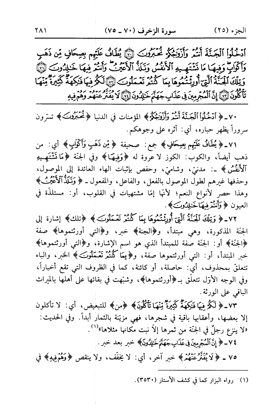 ادْخُلُوا الْجَنَّةَ أَنْتُمْ وَأَزْوَاجُكُمْ تُحْبَرُونَ (70)