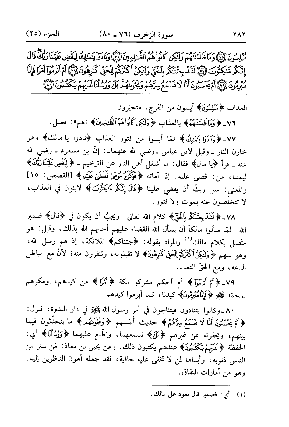 وَنَادَوْا يَا مَالِكُ لِيَقْضِ عَلَيْنَا رَبُّكَ قَالَ إِنَّكُمْ مَاكِثُونَ (77)