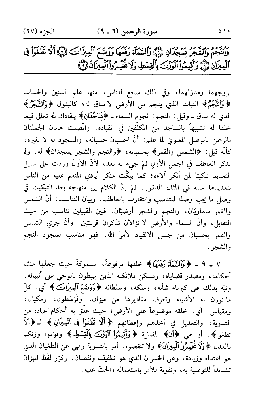 وَالسَّمَاءَ رَفَعَهَا وَوَضَعَ الْمِيزَانَ (7)