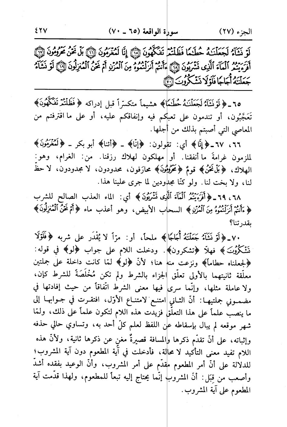 لَوْ نَشَاءُ جَعَلْنَاهُ أُجَاجًا فَلَوْلَا تَشْكُرُونَ (70)