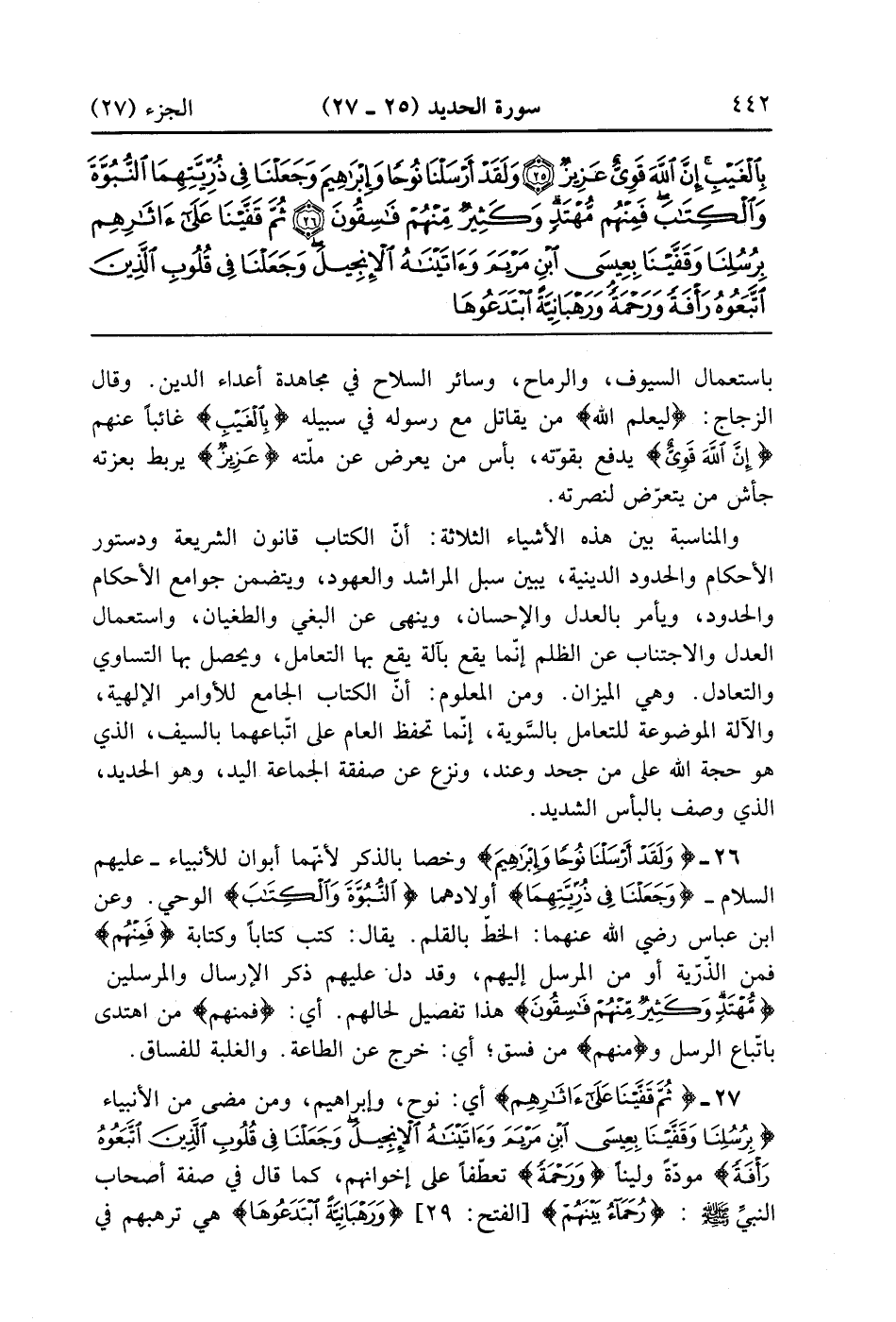 ثُمَّ قَفَّيْنَا عَلَى آثَارِهِمْ بِرُسُلِنَا وَقَفَّيْنَا بِعِيسَى ابْنِ مَرْيَمَ وَآتَيْنَاهُ الْإِنْجِيلَ وَجَعَلْنَا فِي قُلُوبِ الَّذِينَ اتَّبَعُوهُ رَأْفَةً وَرَحْمَةً وَرَهْبَانِيَّةً ابْتَدَعُوهَا مَا كَتَبْنَاهَا عَلَيْهِمْ إِلَّا ابْتِغَاءَ رِضْوَانِ اللَّهِ فَمَا رَعَوْهَا حَقَّ رِعَايَتِهَا فَآتَيْنَا الَّذِينَ آمَنُوا مِنْهُمْ أَجْرَهُمْ وَكَثِيرٌ مِنْهُمْ فَاسِقُونَ (27)