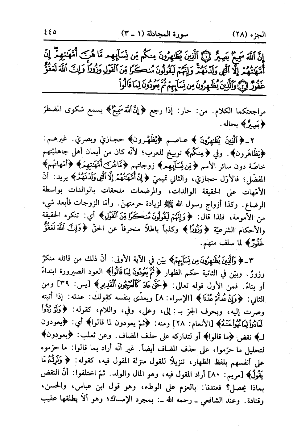 الَّذِينَ يُظَاهِرُونَ مِنْكُمْ مِنْ نِسَائِهِمْ مَا هُنَّ أُمَّهَاتِهِمْ إِنْ أُمَّهَاتُهُمْ إِلَّا اللَّائِي وَلَدْنَهُمْ وَإِنَّهُمْ لَيَقُولُونَ مُنْكَرًا مِنَ الْقَوْلِ وَزُورًا وَإِنَّ اللَّهَ لَعَفُوٌّ غَفُورٌ (2)