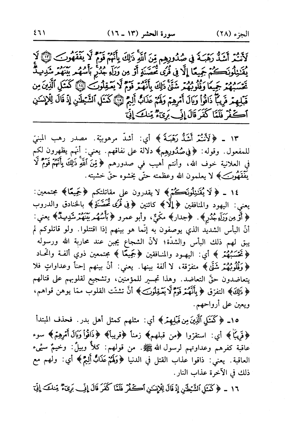 كَمَثَلِ الشَّيْطَانِ إِذْ قَالَ لِلْإِنْسَانِ اكْفُرْ فَلَمَّا كَفَرَ قَالَ إِنِّي بَرِيءٌ مِنْكَ إِنِّي أَخَافُ اللَّهَ رَبَّ الْعَالَمِينَ (16)