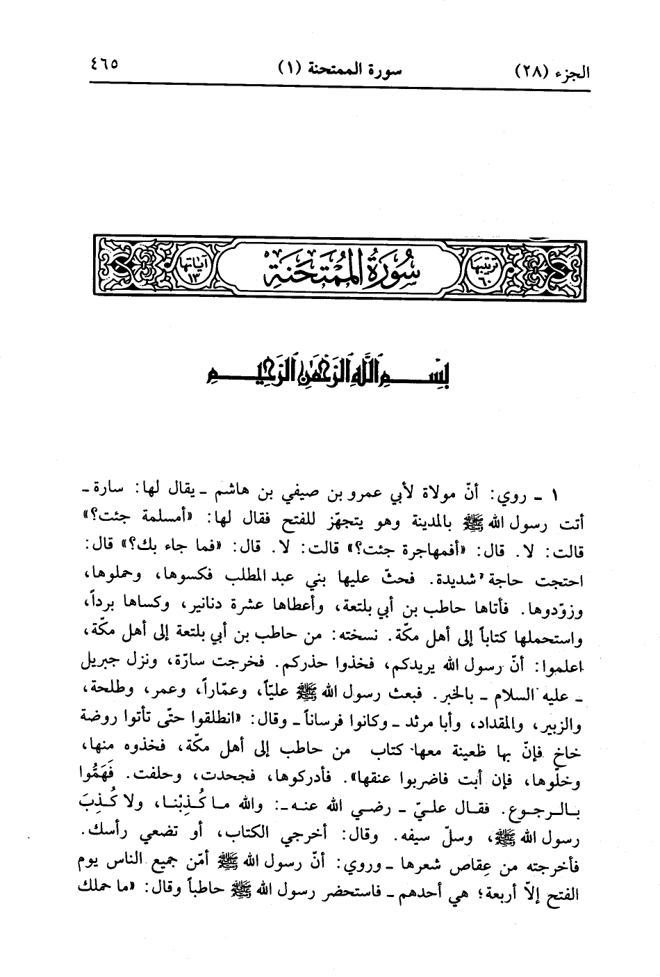يَا أَيُّهَا الَّذِينَ آمَنُوا لَا تَتَّخِذُوا عَدُوِّي وَعَدُوَّكُمْ أَوْلِيَاءَ تُلْقُونَ إِلَيْهِمْ بِالْمَوَدَّةِ وَقَدْ كَفَرُوا بِمَا جَاءَكُمْ مِنَ الْحَقِّ يُخْرِجُونَ الرَّسُولَ وَإِيَّاكُمْ أَنْ تُؤْمِنُوا بِاللَّهِ رَبِّكُمْ إِنْ كُنْتُمْ خَرَجْتُمْ جِهَادًا فِي سَبِيلِي وَابْتِغَاءَ مَرْضَاتِي تُسِرُّونَ إِلَيْهِمْ بِالْمَوَدَّةِ وَأَنَا أَعْلَمُ بِمَا أَخْفَيْتُمْ وَمَا أَعْلَنْتُمْ وَمَنْ يَفْعَلْهُ مِنْكُمْ فَقَدْ ضَلَّ سَوَاءَ السَّبِيلِ (1)