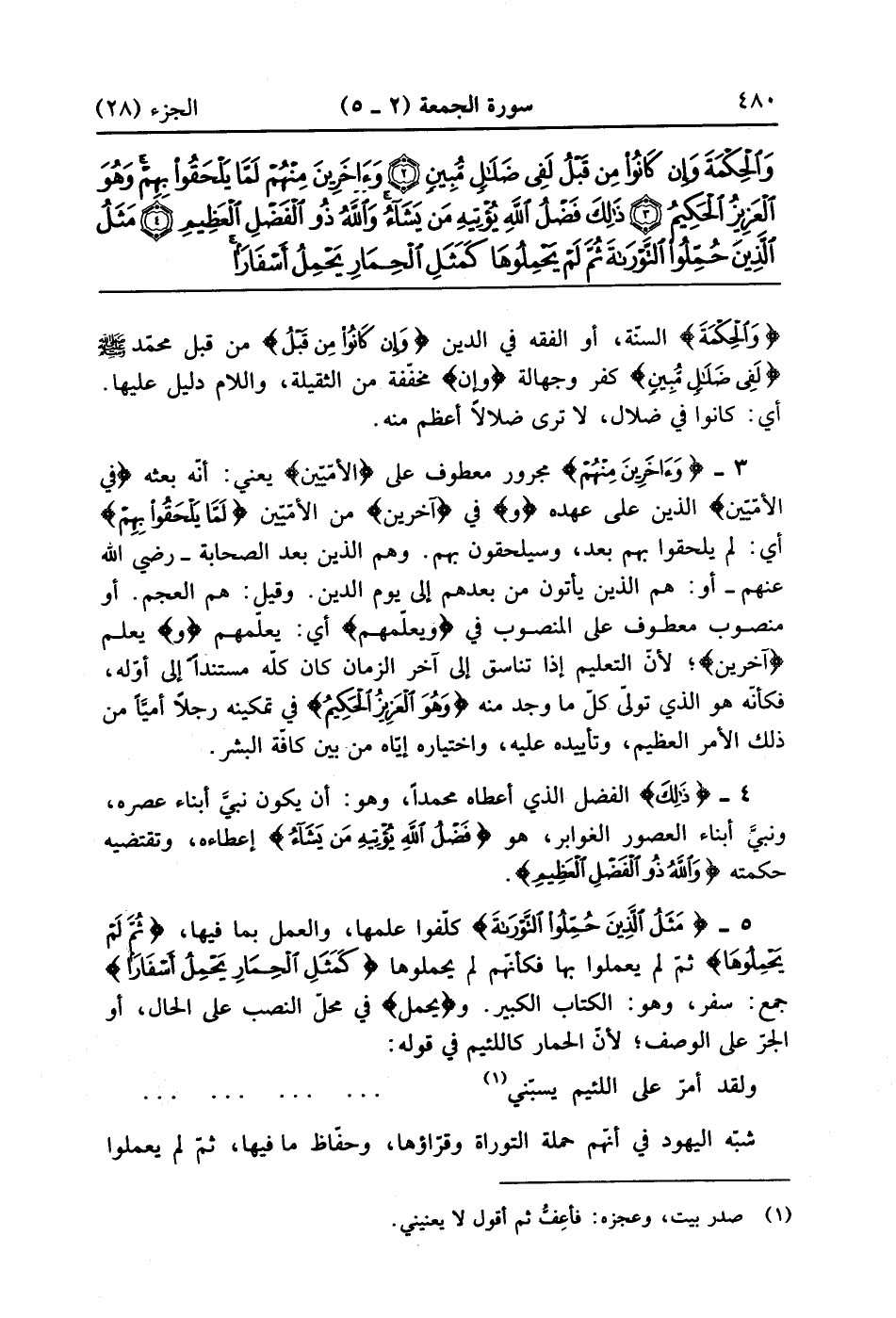مَثَلُ الَّذِينَ حُمِّلُوا التَّوْرَاةَ ثُمَّ لَمْ يَحْمِلُوهَا كَمَثَلِ الْحِمَارِ يَحْمِلُ أَسْفَارًا بِئْسَ مَثَلُ الْقَوْمِ الَّذِينَ كَذَّبُوا بِآيَاتِ اللَّهِ وَاللَّهُ لَا يَهْدِي الْقَوْمَ الظَّالِمِينَ (5)