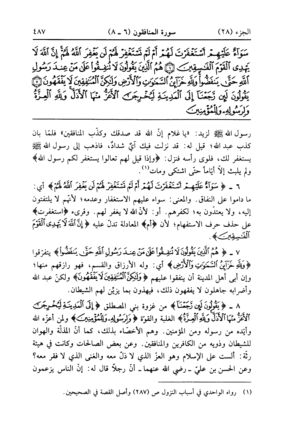 يَقُولُونَ لَئِنْ رَجَعْنَا إِلَى الْمَدِينَةِ لَيُخْرِجَنَّ الْأَعَزُّ مِنْهَا الْأَذَلَّ وَلِلَّهِ الْعِزَّةُ وَلِرَسُولِهِ وَلِلْمُؤْمِنِينَ وَلَكِنَّ الْمُنَافِقِينَ لَا يَعْلَمُونَ (8)