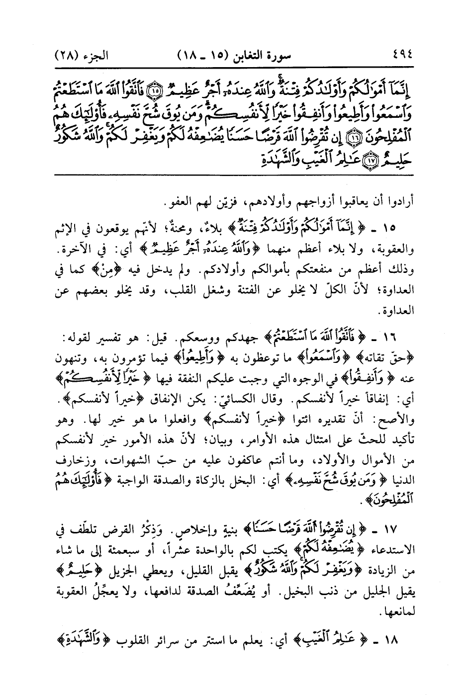 فَاتَّقُوا اللَّهَ مَا اسْتَطَعْتُمْ وَاسْمَعُوا وَأَطِيعُوا وَأَنْفِقُوا خَيْرًا لِأَنْفُسِكُمْ وَمَنْ يُوقَ شُحَّ نَفْسِهِ فَأُولَئِكَ هُمُ الْمُفْلِحُونَ (16)