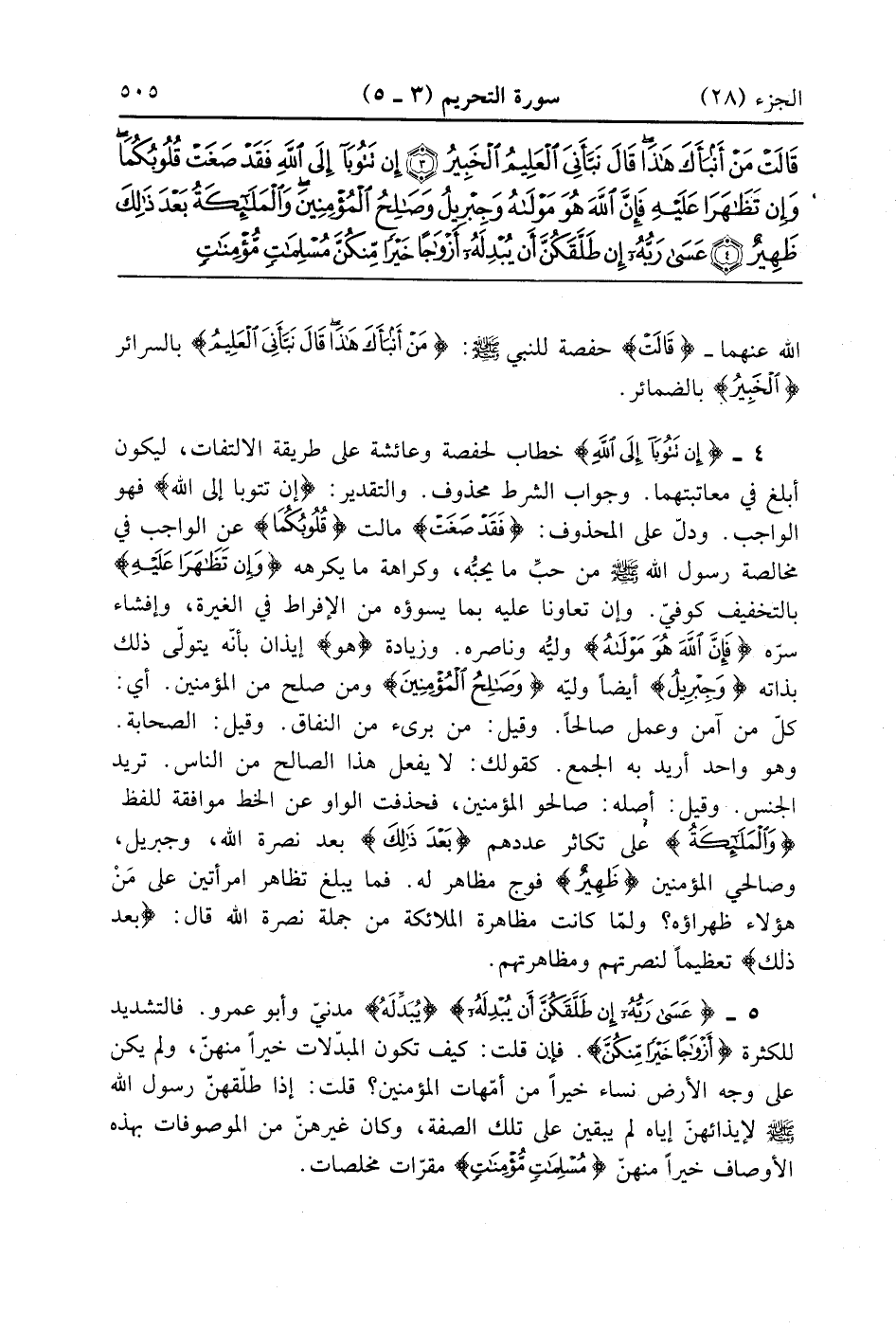 إِنْ تَتُوبَا إِلَى اللَّهِ فَقَدْ صَغَتْ قُلُوبُكُمَا وَإِنْ تَظَاهَرَا عَلَيْهِ فَإِنَّ اللَّهَ هُوَ مَوْلَاهُ وَجِبْرِيلُ وَصَالِحُ الْمُؤْمِنِينَ وَالْمَلَائِكَةُ بَعْدَ ذَلِكَ ظَهِيرٌ (4)