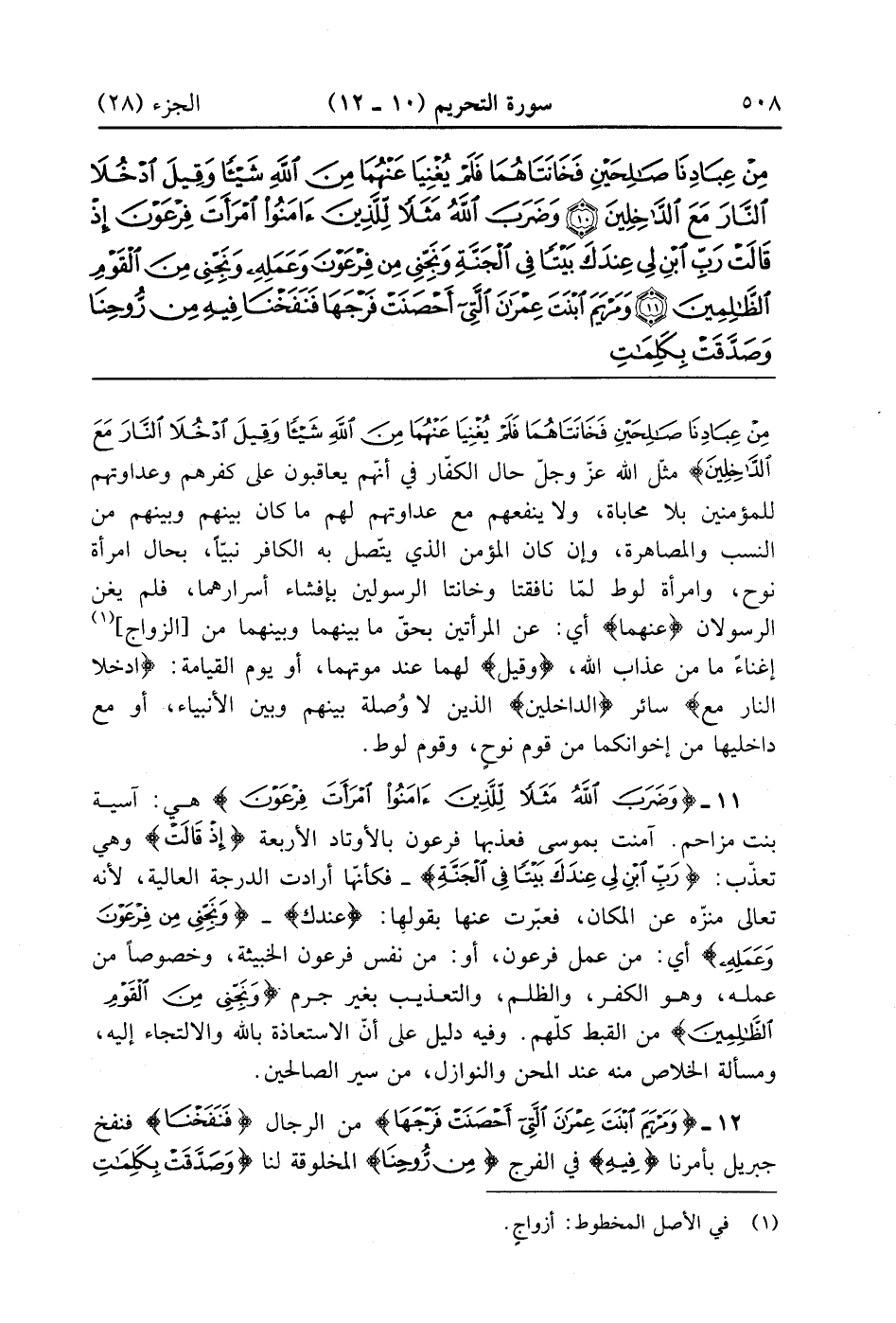 وَمَرْيَمَ ابْنَتَ عِمْرَانَ الَّتِي أَحْصَنَتْ فَرْجَهَا فَنَفَخْنَا فِيهِ مِنْ رُوحِنَا وَصَدَّقَتْ بِكَلِمَاتِ رَبِّهَا وَكُتُبِهِ وَكَانَتْ مِنَ الْقَانِتِينَ (12)
