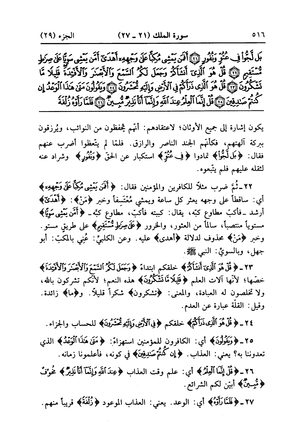 أَفَمَنْ يَمْشِي مُكِبًّا عَلَى وَجْهِهِ أَهْدَى أَمَّنْ يَمْشِي سَوِيًّا عَلَى صِرَاطٍ مُسْتَقِيمٍ (22)