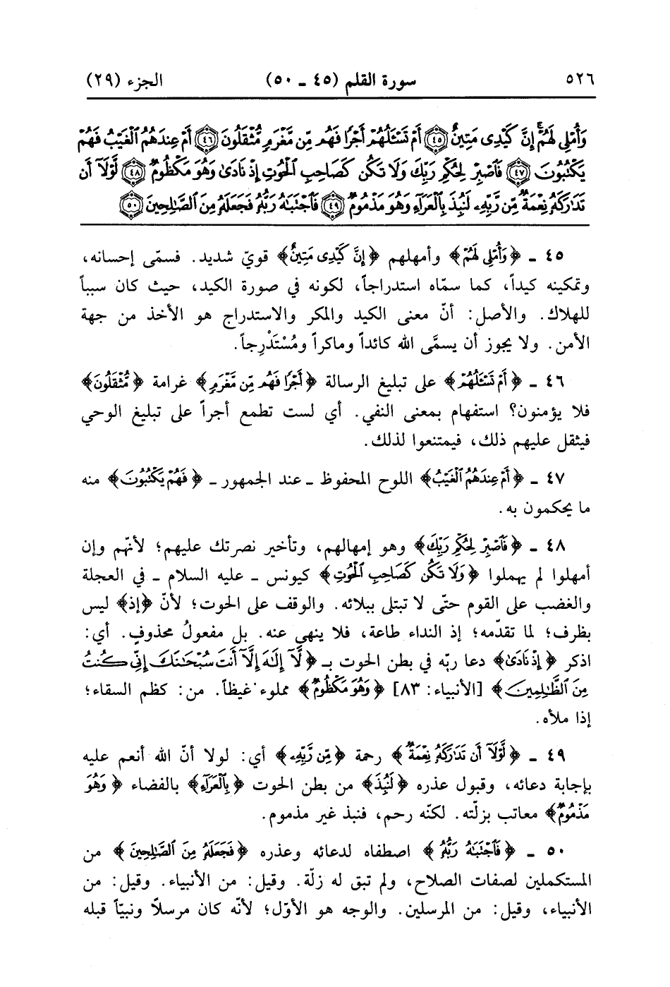 فَاصْبِرْ لِحُكْمِ رَبِّكَ وَلَا تَكُنْ كَصَاحِبِ الْحُوتِ إِذْ نَادَى وَهُوَ مَكْظُومٌ (48)