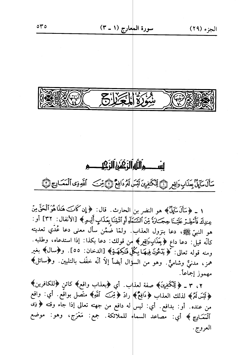 سورة المعارج مكية وهي أربع وأربعون آية
