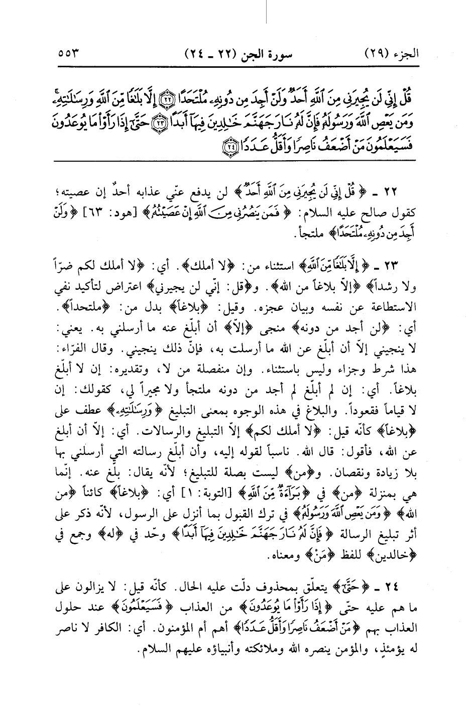 إِلَّا بَلَاغًا مِنَ اللَّهِ وَرِسَالَاتِهِ وَمَنْ يَعْصِ اللَّهَ وَرَسُولَهُ فَإِنَّ لَهُ نَارَ جَهَنَّمَ خَالِدِينَ فِيهَا أَبَدًا (23)