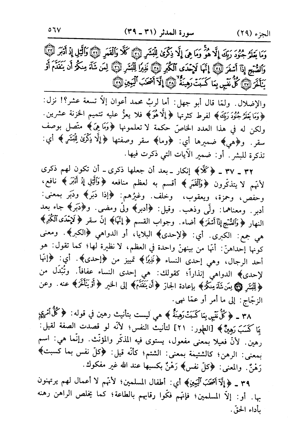 كُلُّ نَفْسٍ بِمَا كَسَبَتْ رَهِينَةٌ (38)