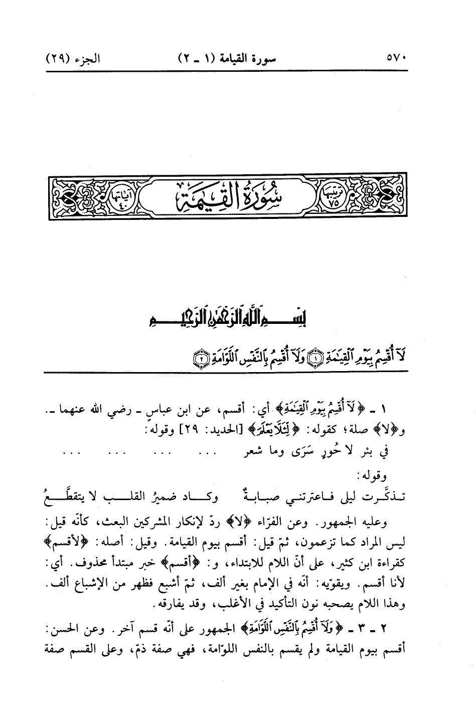 سورة القيامة مكي وهي أربعون آية
