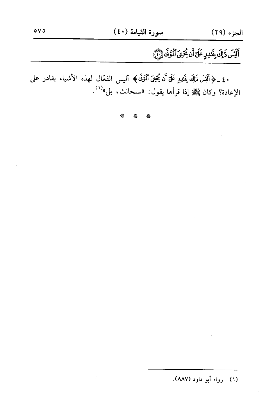 أَلَيْسَ ذَلِكَ بِقَادِرٍ عَلَى أَنْ يُحْيِيَ الْمَوْتَى (40)