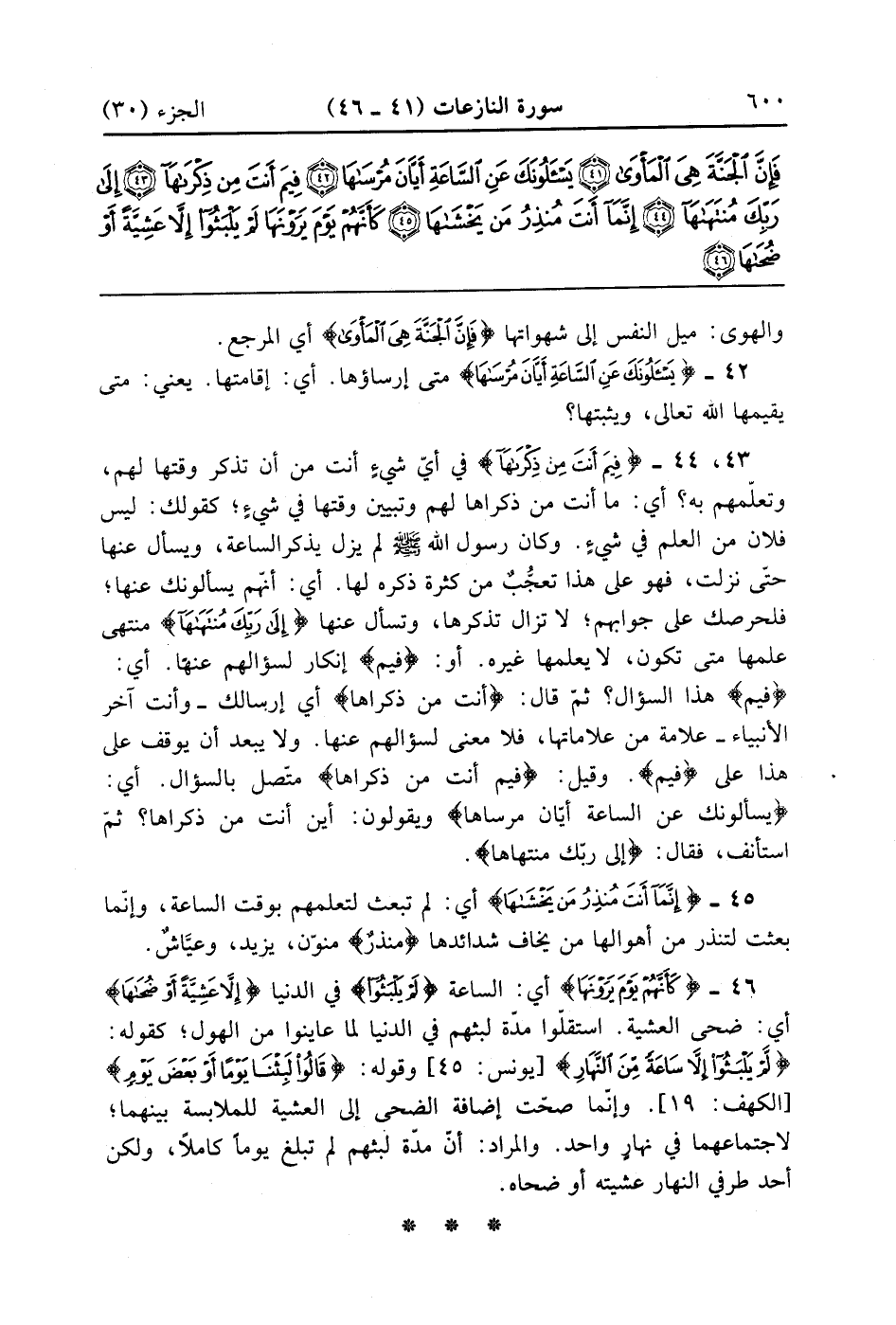 يَسْأَلُونَكَ عَنِ السَّاعَةِ أَيَّانَ مُرْسَاهَا (42)