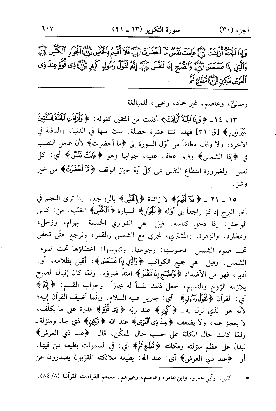 {فَلاَ أُقْسِمُ} لا زائدة {بالخنس} بالرواجع بينا ترى النجم فى آخر البرج اذكر راجعاً إلى أوله