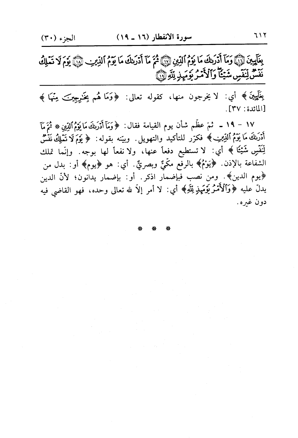 يَوْمَ لَا تَمْلِكُ نَفْسٌ لِنَفْسٍ شَيْئًا وَالْأَمْرُ يَوْمَئِذٍ لِلَّهِ (19)