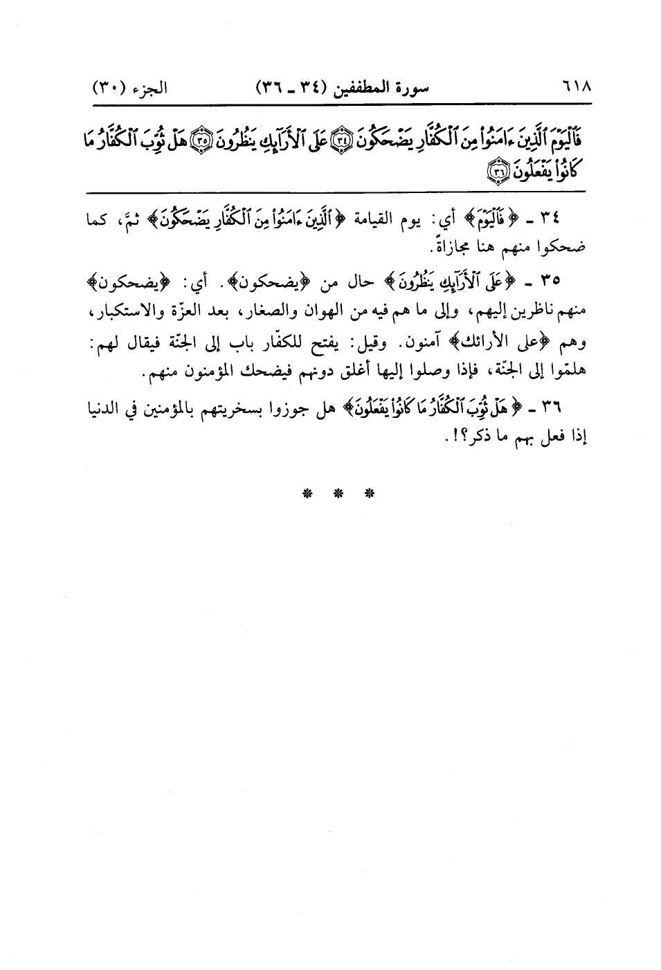{هَلْ ثُوِّبَ الكفار مَا كَانُواْ يَفْعَلُونَ} هل جوزوا بسخريتهم بالؤمنين في الدنيا إذا فعل بهم ما ذكر والله أعلم