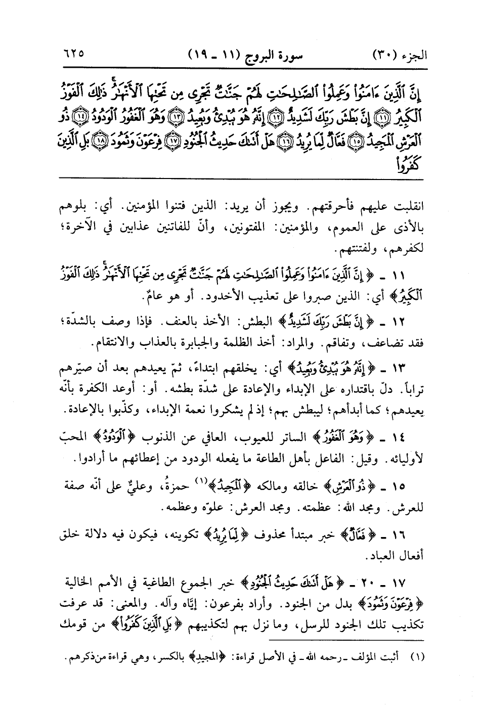 {ذو العرش} خالقه ومالكه {المجيد} بالجر حمزة وعلي على أنه صفة للعرش ومجد الله عظيمته ومجد العرش علوه وعظمته
