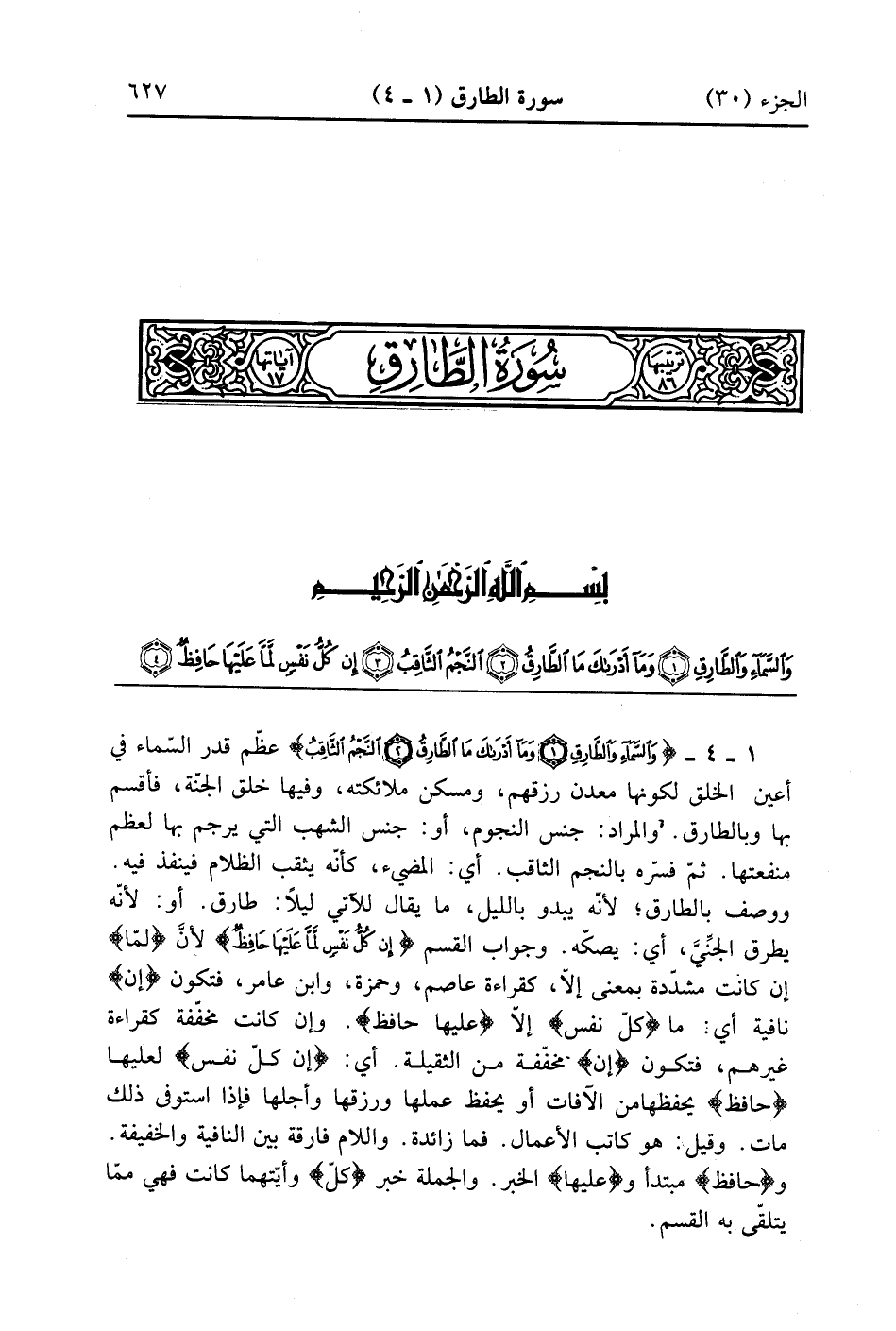 وَالسَّمَاءِ وَالطَّارِقِ (1) وَمَا أَدْرَاكَ مَا الطَّارِقُ (2) النَّجْمُ الثَّاقِبُ (3)
